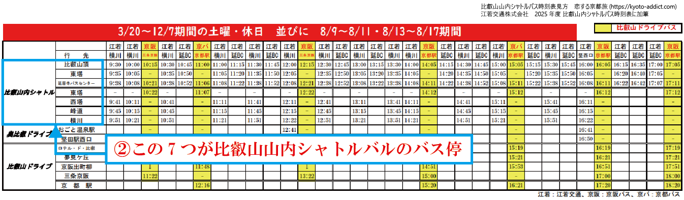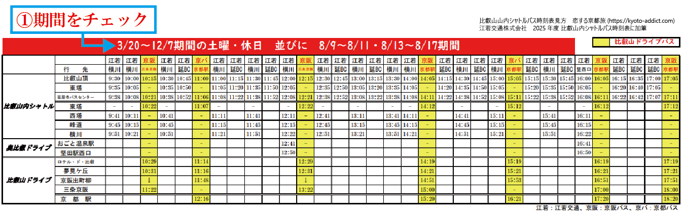 ※比叡山山内シャトルバスは、平日と休日・GW・夏休み期間でバスダイヤが異なる