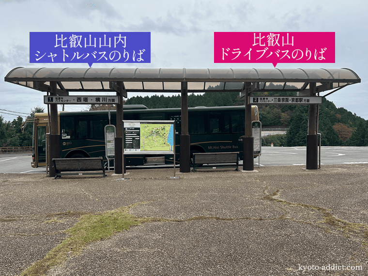 京都駅などからバス1本で来る場合の「比叡山ドライブバス」のバス停でもあります。