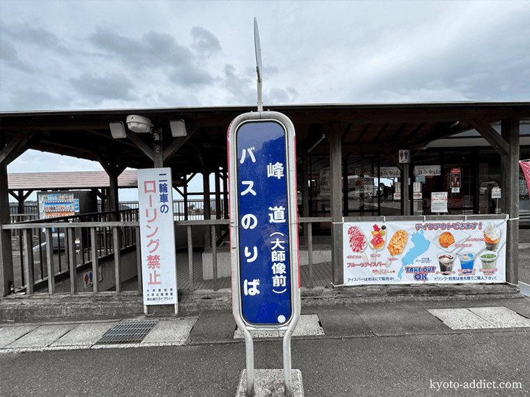 比叡山山内シャトルバス5番目のバス停が「峰道(大師像前)」です。