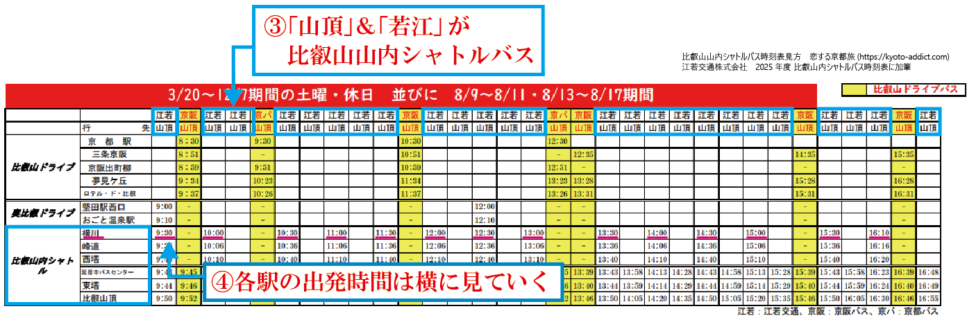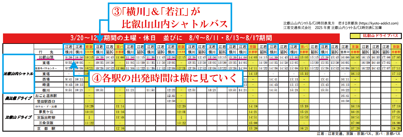 時刻表・時刻表の見方|比叡山シャトルバス