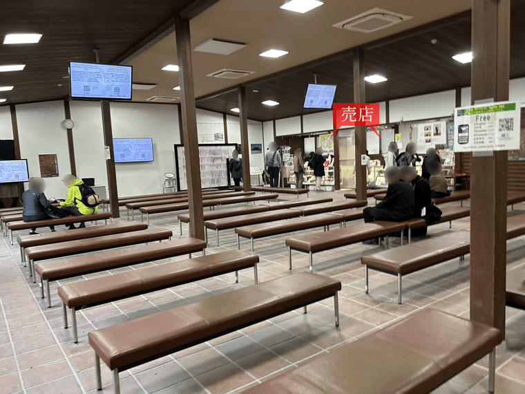 | 参観者休所外観 | 室内の様子:右奥が売店 |