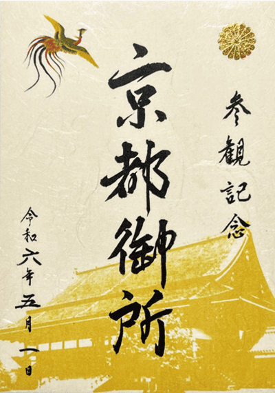 京都御苑内にある「京都御所」では、御朱印サイズの「参観記念符」と御朱印帳が販売されています。