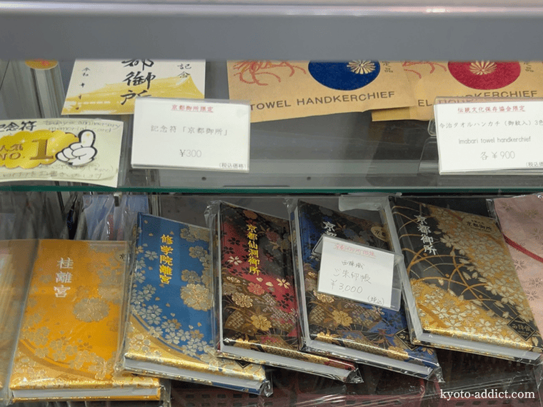 ・京都御所の売店では京都仙洞御所、桂離宮、修学院離宮の参観記念符や朱印帳も取り扱いあり