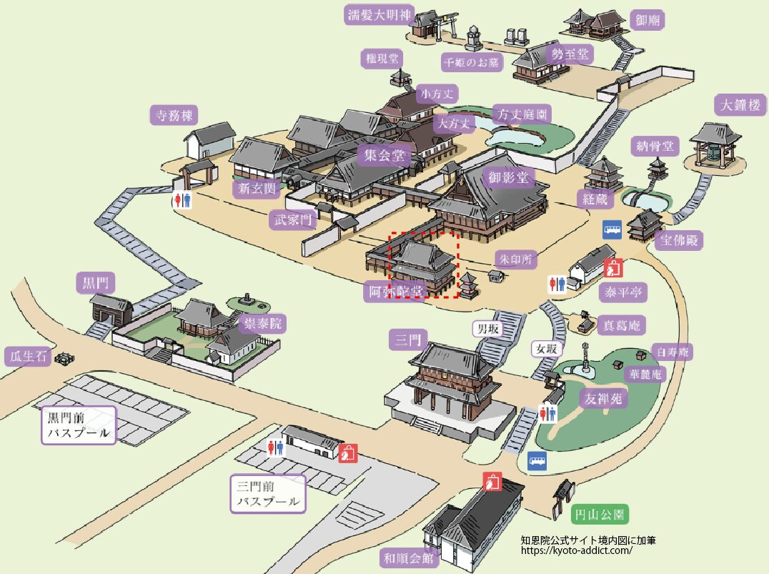 朱印 | 右:特別拝観 中:方丈と方丈庭園のイラスト 左:浄土宗総本山知恩院 |