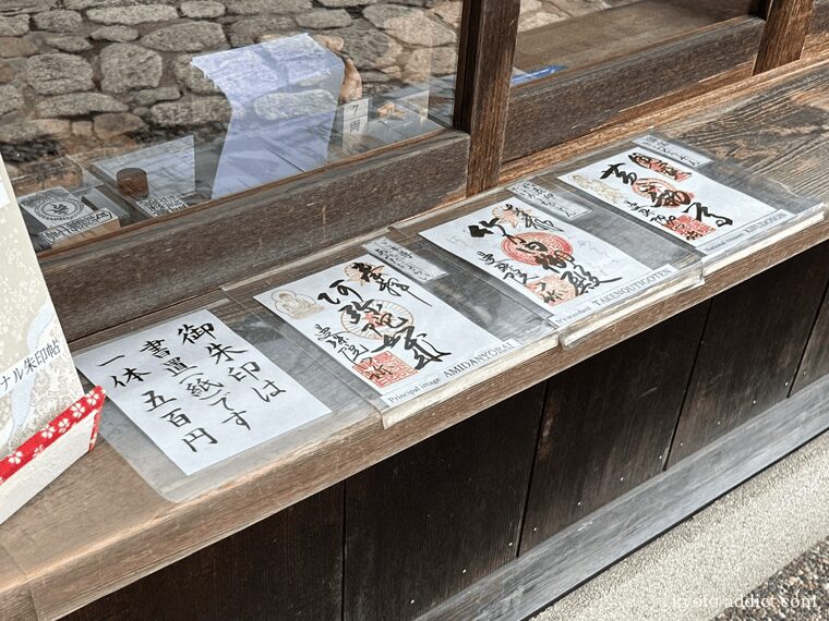 拝観受付のすぐ隣が御朱印の受付で、↓このような書置きの見本が置いてあります。