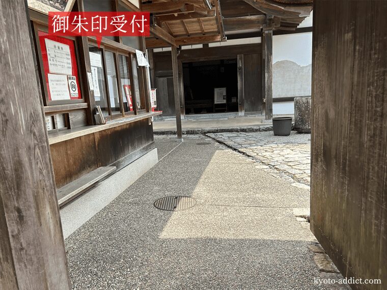 ↓こちらの左の小さい出入口から入ってすぐが拝観受付と御朱印受付です。
