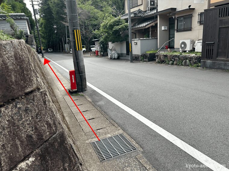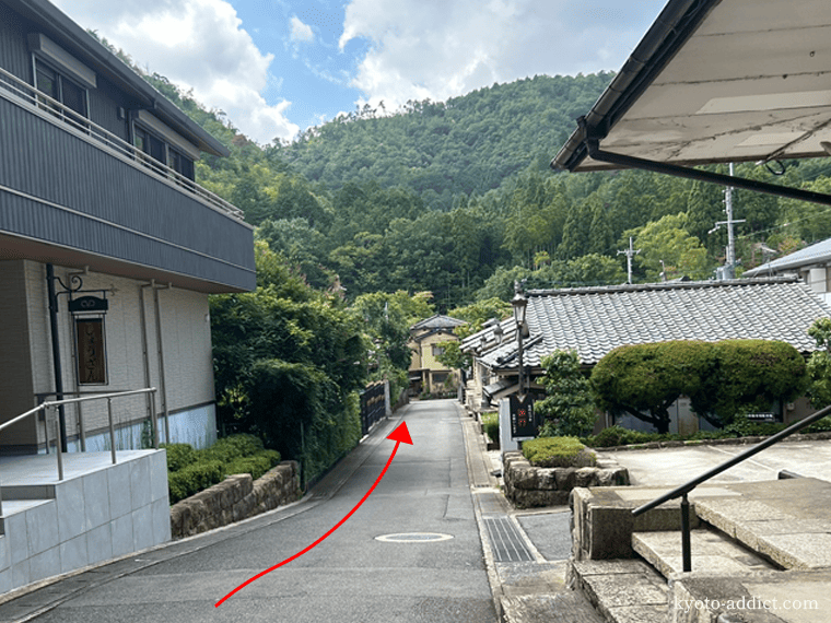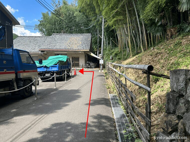 ↓ここから先は道が狭く街灯がない道になります。(秋の夜間拝観時行く方は帰路を考えて懐中電灯を持参するのがいいと思います!)