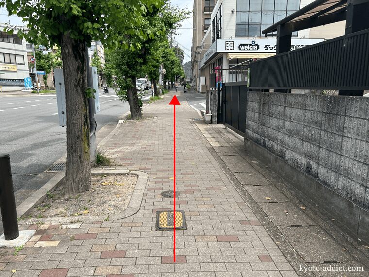 順路3:横断歩道を渡り左へ(白川通を横断)
