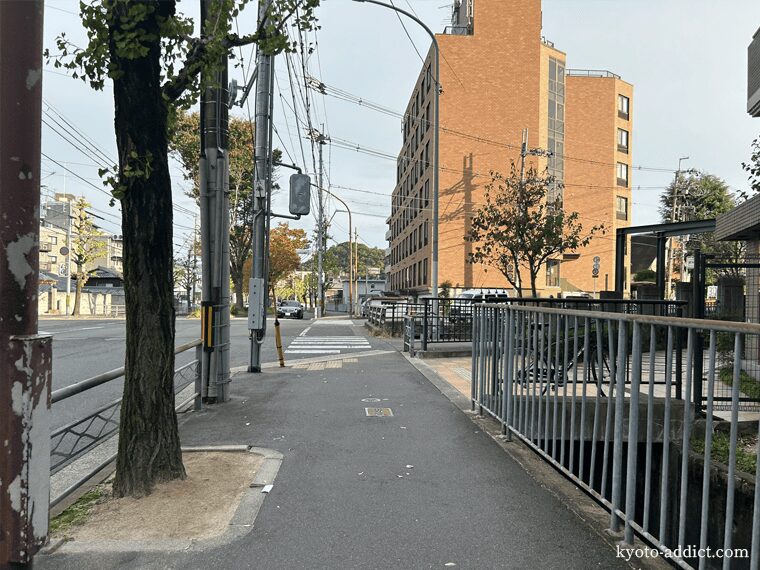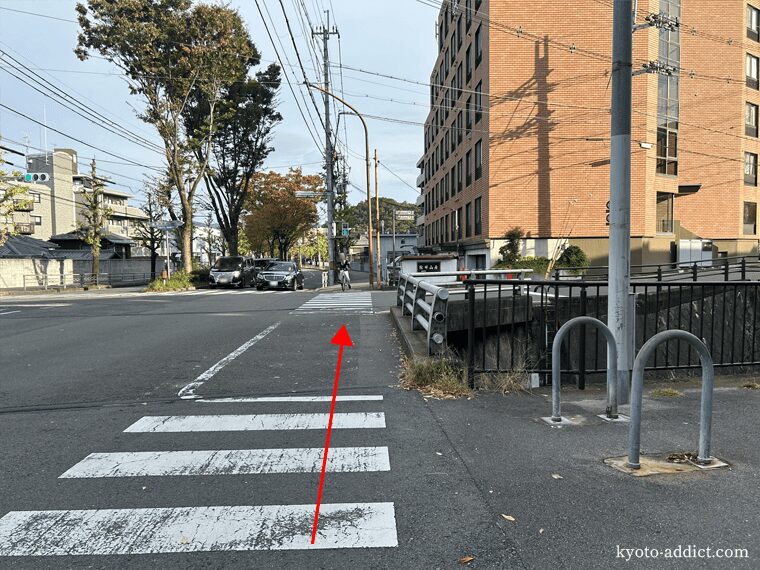 順路5:川の上の横断歩道を渡り右へ(修学院離宮道へ入る)