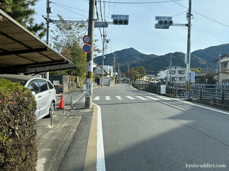 ↑こちらの横断歩道を渡ったところに修学院離宮まで12分の看板があります。 |