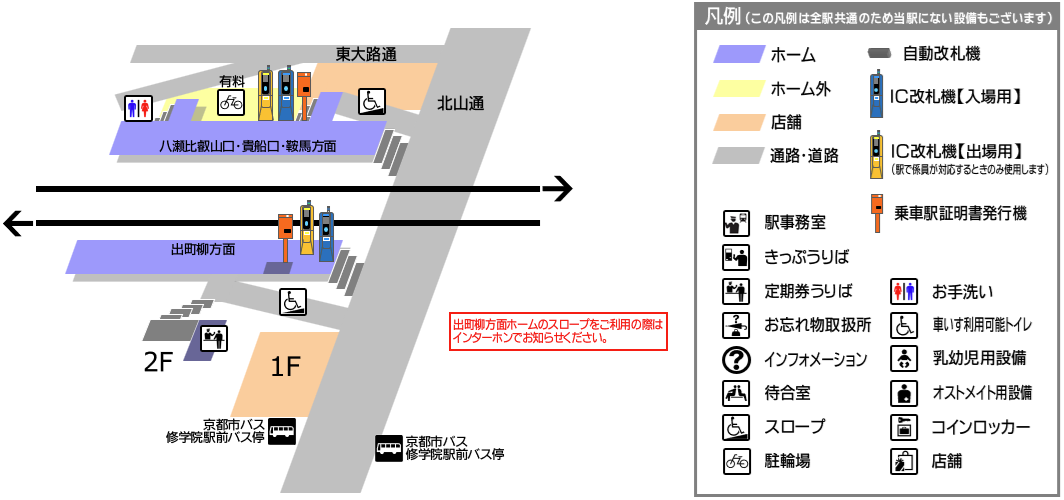 ※鞍馬や八瀬比叡山口方面から電車に乗った場合ホームから出てここからがスタートになります。