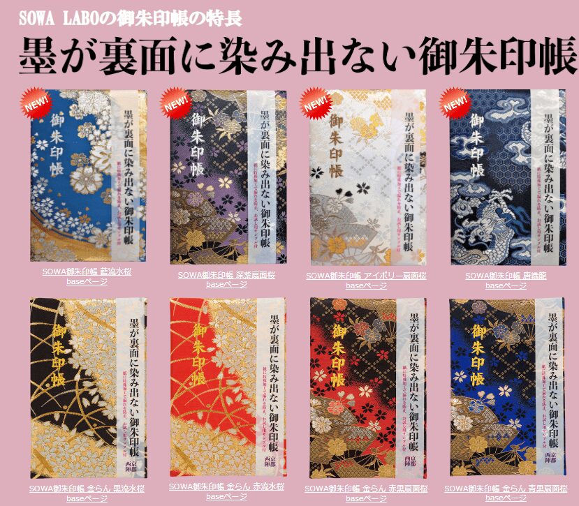 こちらの西陣織シリーズの柄は仙洞御所完全オリジナルではなく、早和製本株式会社さんの「墨が裏面に染み出ない御朱印帳」に同じデザインがあり、京都御所・二条城でも販売されています。