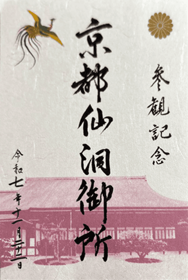 こちらが仙洞御所で通年購入できる御朱印サイズの「参観記念符」です。