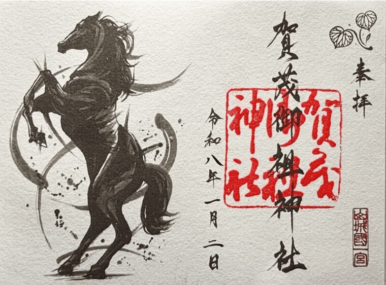 こちらは下鴨神社の干支御朱印。通年授与されている墨絵御朱印と違って、準備数が少なく1月中にはなくなってしまう御朱印です。