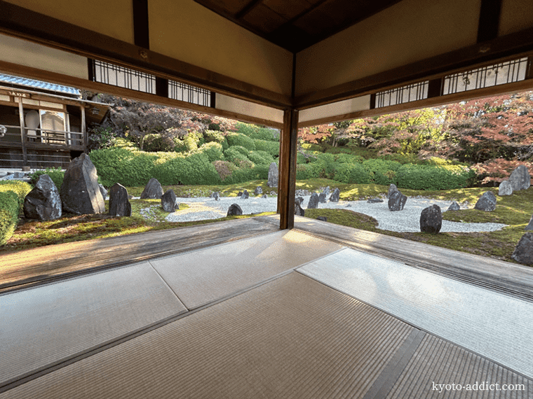 ⑥龍吟庵 ⑦即宗院 ⑧天得院 ⑨一華院 ⑩勝林寺 ⑪盛光院 ⑫霊源院 ⑬栗棘庵(京料理 高澤) ⑭東光寺 ※⑬栗棘庵は建物の一部が京料理・高澤の店舗となり庭を眺めながら食事ができる |